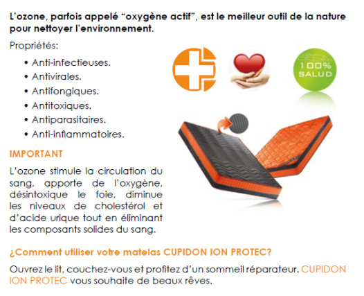 Le matelas CUPIDON ION PROTEC, est recouvert d’un tissu spécial et exclusif, traité à l’ozone et aux anions, vous pourrez ainsi
