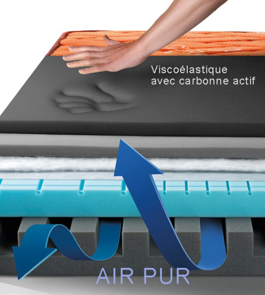 VISCOÉLASTIQUE avec un NOYAU HR HAUTE DENSITÉ À CHARBON ACTIF.