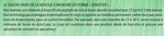 Ce matelas peut être complété d'une plate forme mémoire, voir la rubrique plateforme.