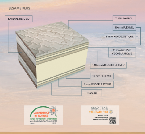 Le matelas viscoélastique Bambou Sesame Plus est considéré comme l'un des meilleurs matelas du marché. Depuis son lancement, il a su se perfectionner et s'adapter aux technologies d'hygiène et de pointe du monde du repos.